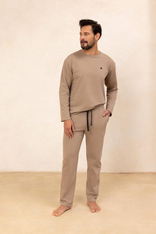 Ciepła piżama męska uszyta z miłej dzianiny z elastanem. Spodnie z kieszeniami.